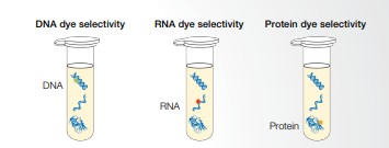 Флуоресцентные красители избирательно связываются с ДНК, РНК или белком. Красители излучают сигнал только тогда, когда они связаны с мишенью. |