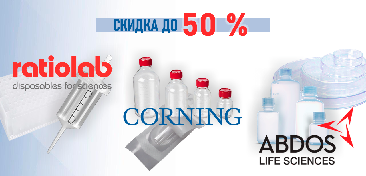 Распродажа товара производителей Corning, Ratiolab и Abdos! Скидки до 50%!