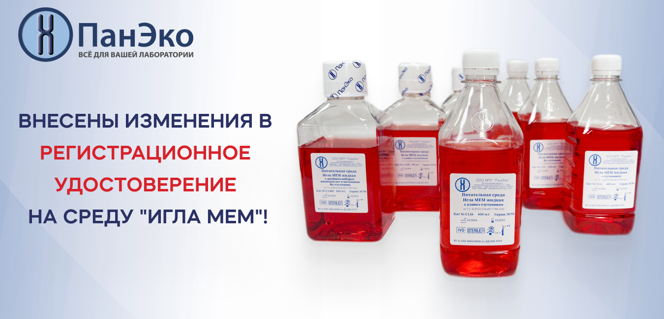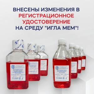 Рады сообщить вам, что внесены изменения в Регистрационное удостоверение на питательную среду Игла МЕМ жидкая, а именно:
