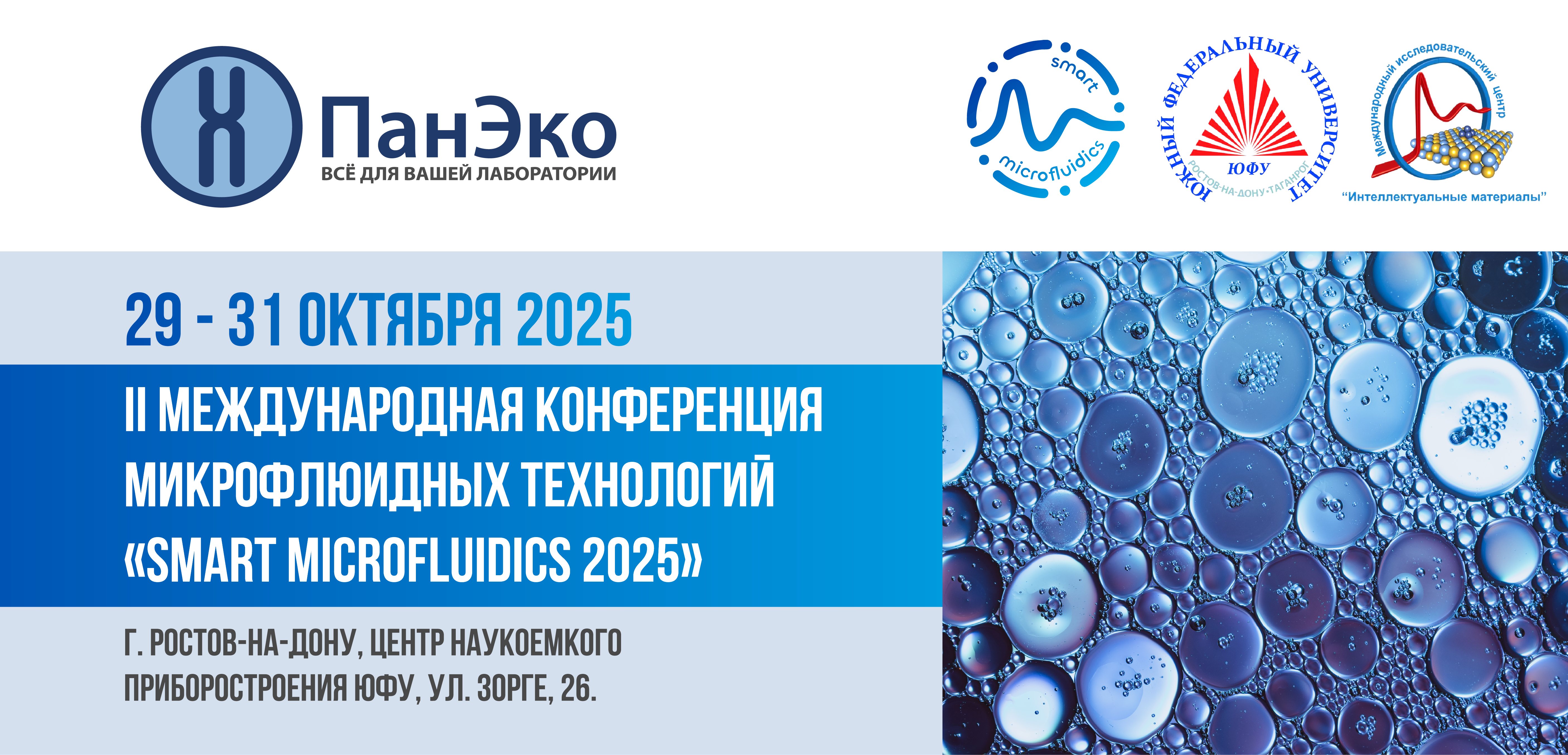 Группа компаний «ПанЭко» примет участие во II Международной конференции микрофлюидных технологий «Smart microfluidics 2025», которая состоится 29–31 октября в Ростове-на-Дону на базе Центра Наукоемкого приборостроения ЮФУ.