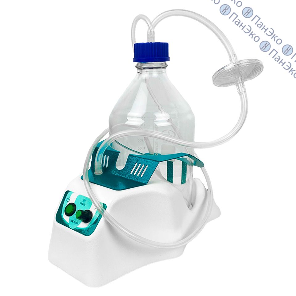 Для включения прибора нажмите кнопку на панели управления. В сосуде-ловушке создается разреженная атмосфера, соединенная с аспирационным наконечником (200 мкл). Стеклянный сосуд оснащен микробиологическим фильтром, устраняющим риск выхода бактерий и вирусов (до 99,9% частиц размером более 0,027 мкм).