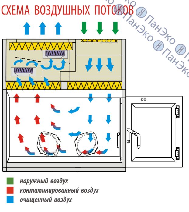 - Защита рабочих агентов внутри рабочей камеры от внешней контаминации.
