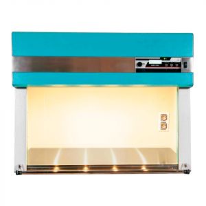 Корпус бокса сделан из металла, окрашенного порошковым полимером, защитный экран — из стекла, шторка — из акрилового стекла. Шторка поднимается и опускается с помощью кнопок на панели управления. В отличие от ручной шторки, которая фиксируется только в двух позициях — открытой и закрытой, её можно приподнять на любую высоту (максимальная высота проёма 24 см).