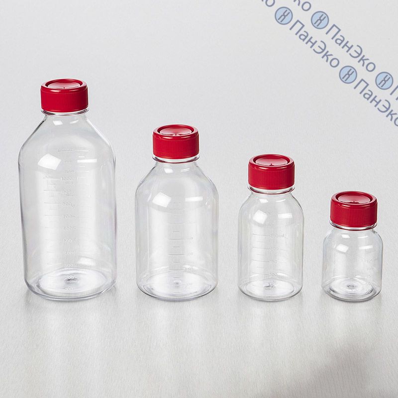 Бутыль цилиндрической формы с широким горлом для хранения питательных сред, буферов и других растворов.