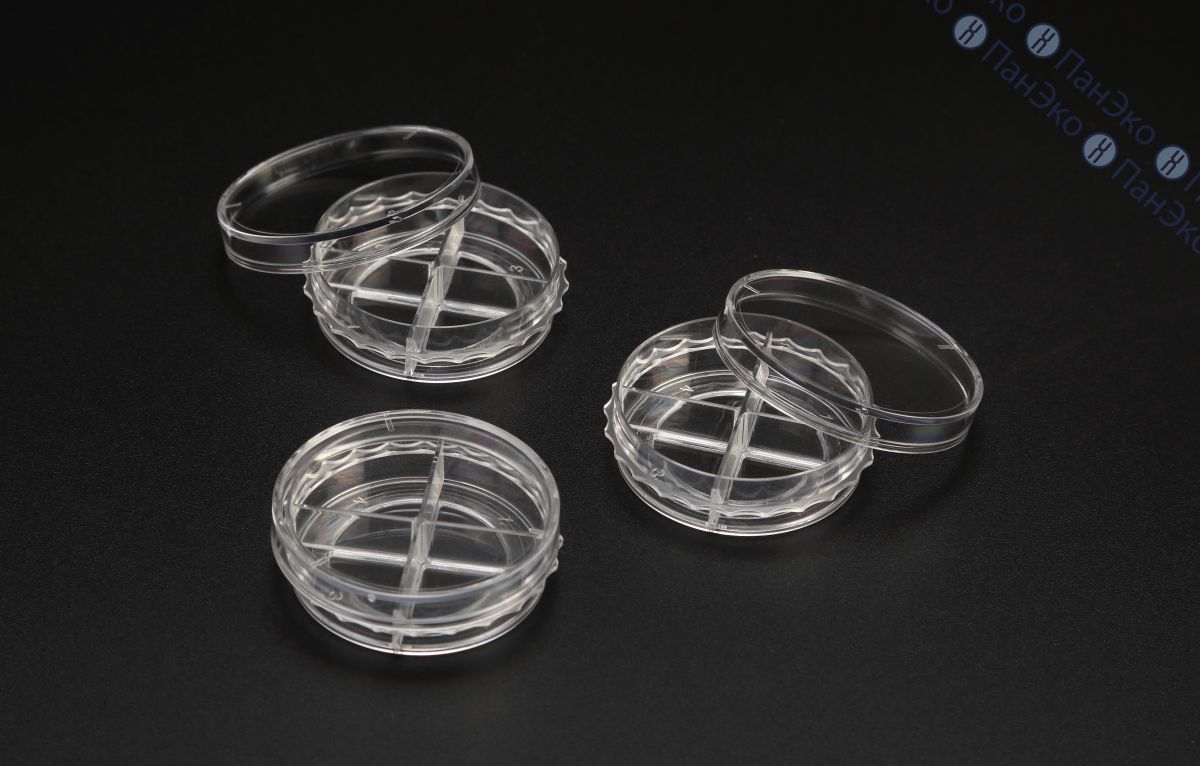 Чашки Петри 35 мм, 4-х секционные, с центральным отверстием Ø25 мм