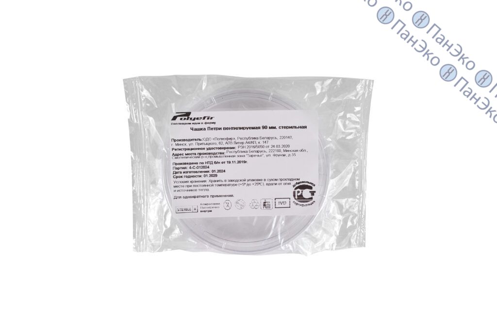 Чашки Петри, 90 мм, вентилируемые, стерильные, Полиэфир
