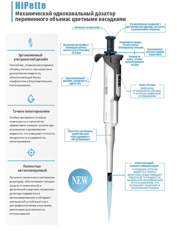 Его эргономичный дизайн, возможность точной настройки объёма и использование высококачественных материалов делают его идеальным выбором для любой лаборатории, где требуется надёжный и эффективный дозатор.