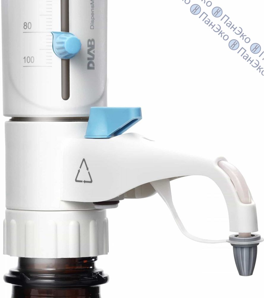 Для многократного дозирования малых и средних объемов жидкостей из бутылей. Устойчив к воздействию концентрированных кислот, щелочей и растворителей (все элементы диспенсера, контактирующие с жидкостью).