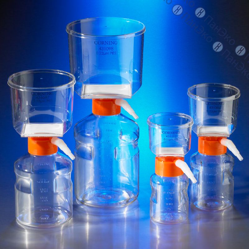 Бутыли с градуировкой. Воронки имеют четкую маркировку объёма и свойств мембраны для легкой идентификации.