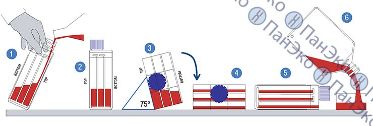 Для культуральных работ. Флакон с тремя параллельными уровнями для выращивания клеток. Общая площадь 500 см². Внешние размеры совпадают с флаконами, площадью 175 см².