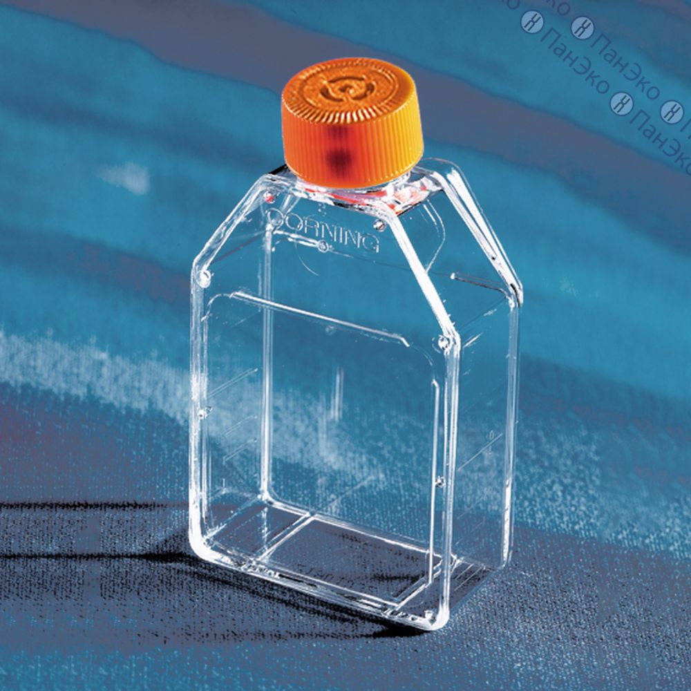 Для культуральных работ. С обработанной поверхностью для прикрепляемых культур клеток. Прямоугольная форма и наклонное горло.