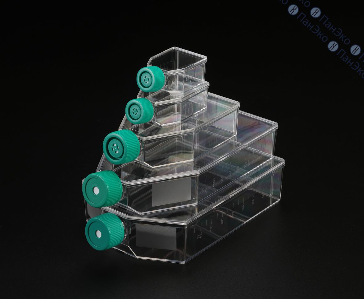 Предназначен для культуральных работ с прикрепляемыми культурами клеток. Эргономический дизайн делает флакон простым в обращении и минимизирует риск контаминации во время культуральных работ. Короткое, широкое, наклонное горло обеспечивает лёгкий доступ к содержимому серологическим пипеткам и скребкам.