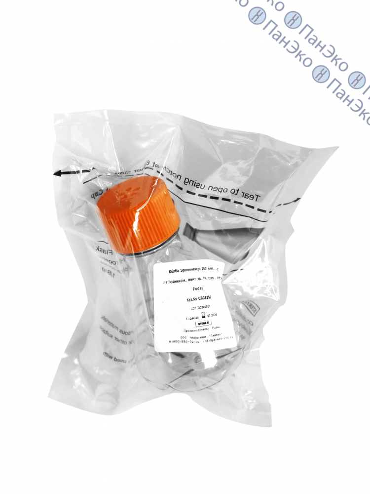 Колба Эрленмейера 250 мл с отбойником, вентилируемая крышка, стерильная (В НАЛИЧИИ)