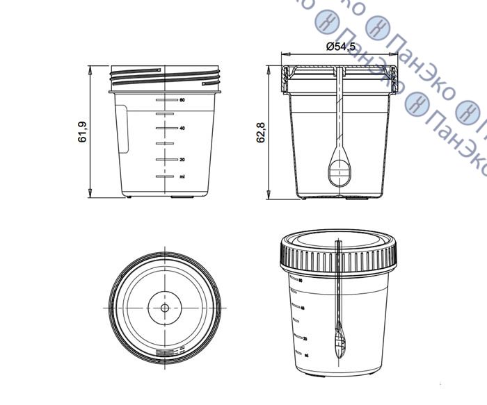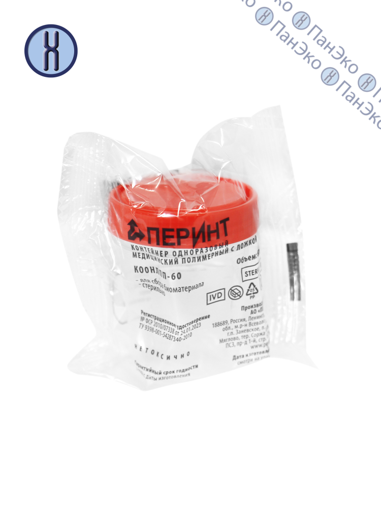 Контейнер 60 мл с ложкой, с красной крышкой, стерильный (В НАЛИЧИИ)