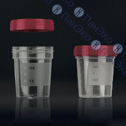 Для сбора биоматериала. С крышкой, градуировка, матовым полем.
