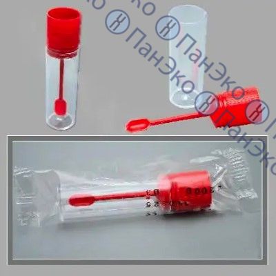 Предназначен для взятия, хранения и транспортировки фекальных и иных твердых или полужидких биоматериалов в лабораторию с целью проведения общеклинических анализов. Стерильный. Материал контейнера - полистирол, крышка - полипропилен. Снабжен герметично закрывающейся пробкой красного цвета с вмонтированной ложкой.