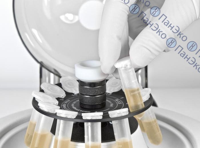 Возможно одновременно осаждать образцы в одних пробирках и встряхивать в других. Удобно применять для осаждения капель со стенок пробирок кратковременным центрифугированием, т.к. центрифуга быстро набирает скорость и так же быстро останавливается.