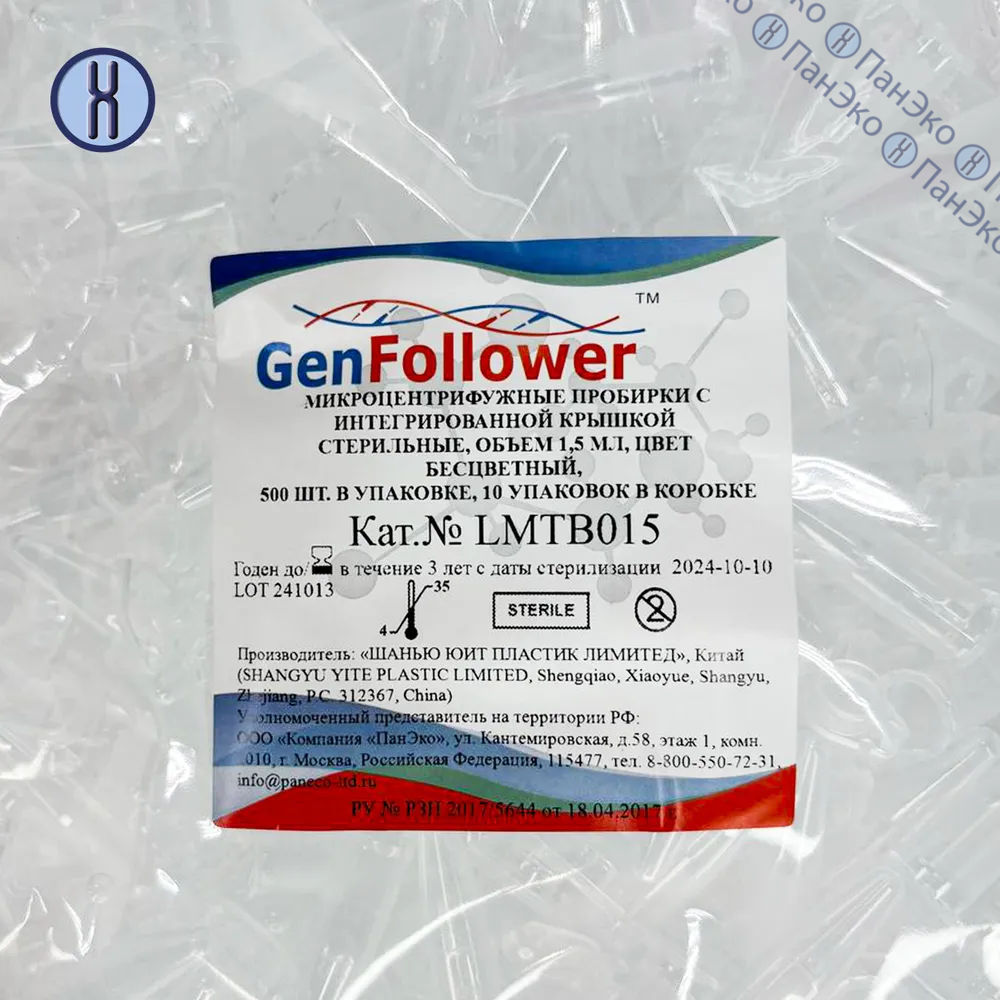 Микропробирки типа Эппендорф, 1,5 мл, с замком, стерильные, GenFollower