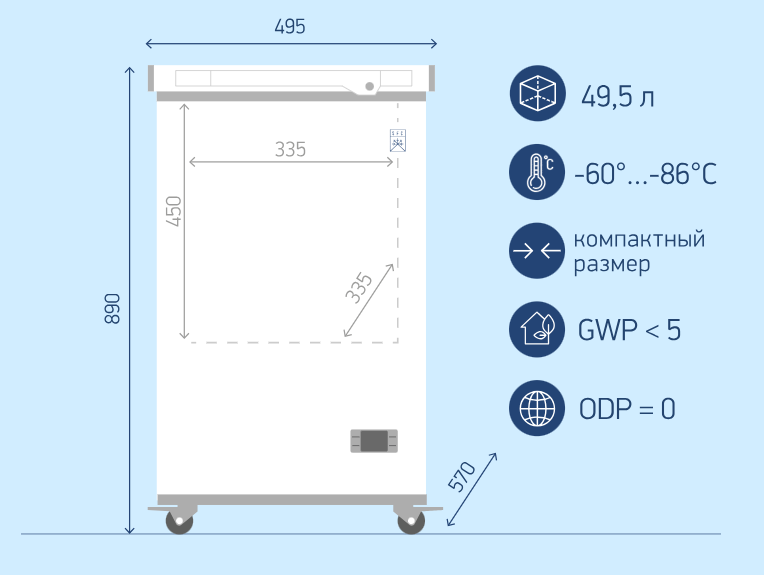 Морозильная камера низкотемпературная MHT-80C, 49,5 л, от - 60°C до - 86°C, SFC