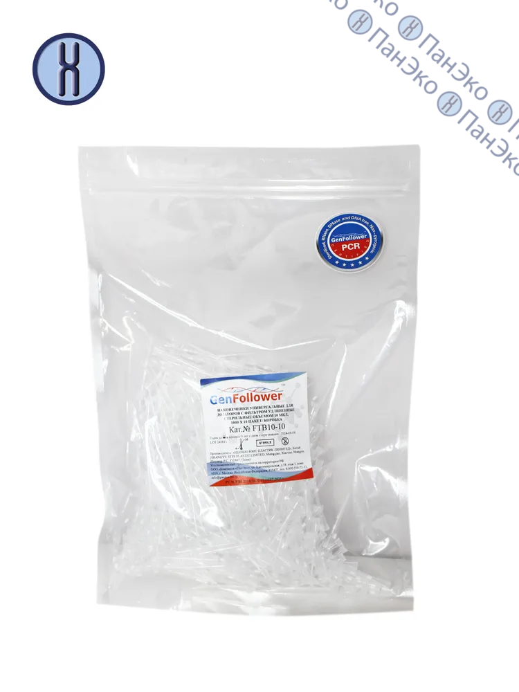 Наконечники, 10 мкл, с фильтром, стерильные, в пакете, GenFollower