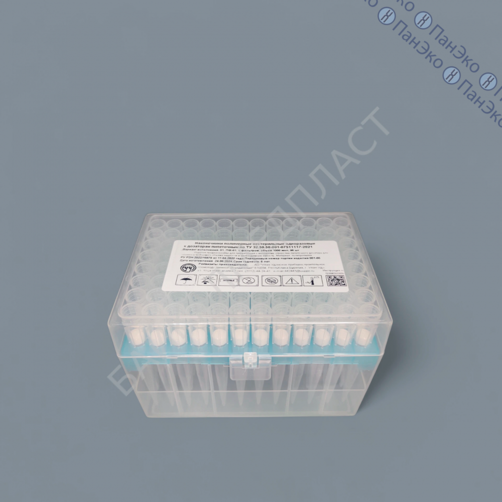 Наконечники, 1000 мкл, нестерильные, с фильтром, в штативе, БайкалМедПласт