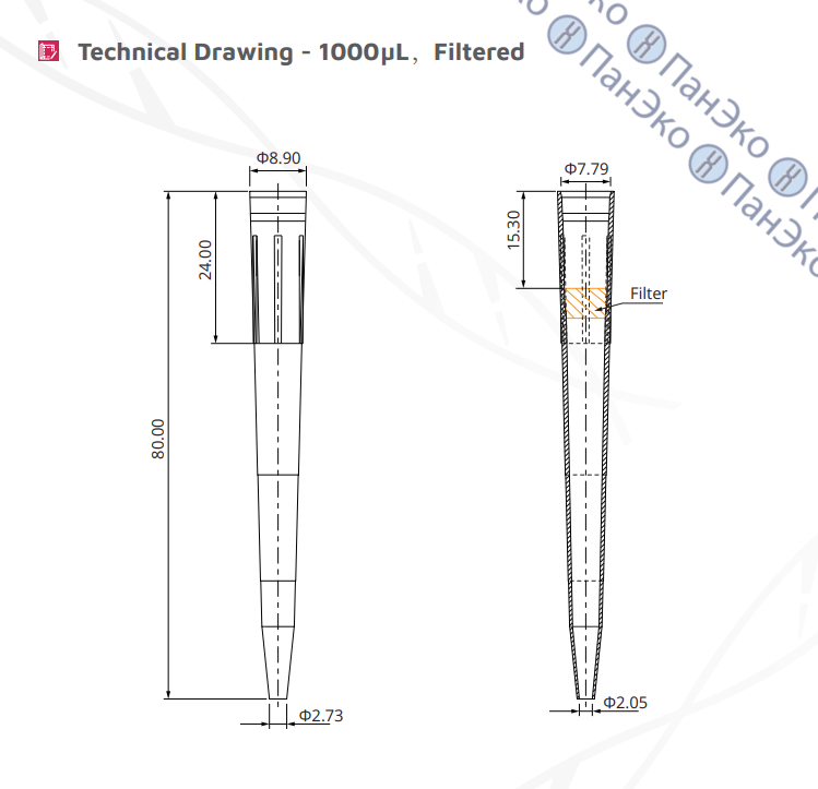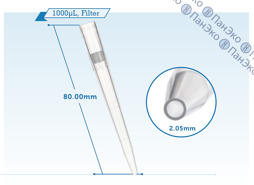 - Фильтр наконечников эффективно предотвращает загрязнение жидкостями и аэрозолями, защищает от перекрестного загрязнения;