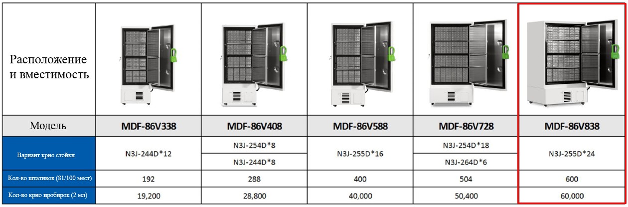 Низкотемпературная морозильная камера MDF-86V838 серии HC, 838 л, Mether