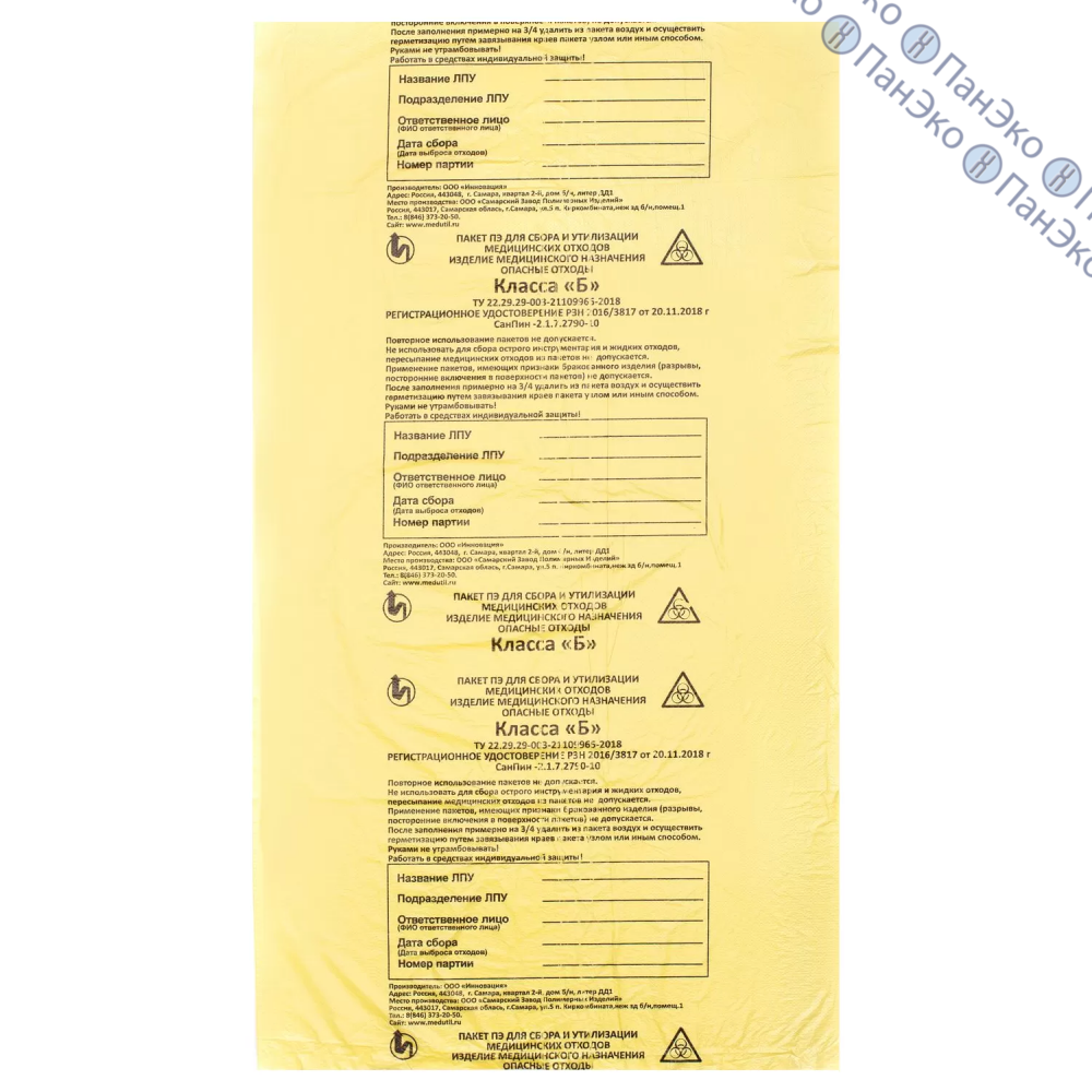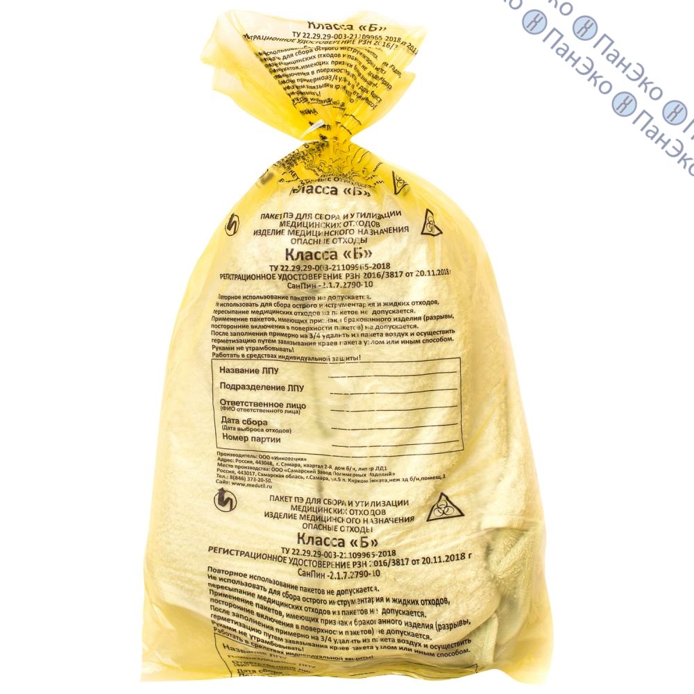 Пакет для медицинских отходов класса «Б», 600 × 1000 мм, Инновация