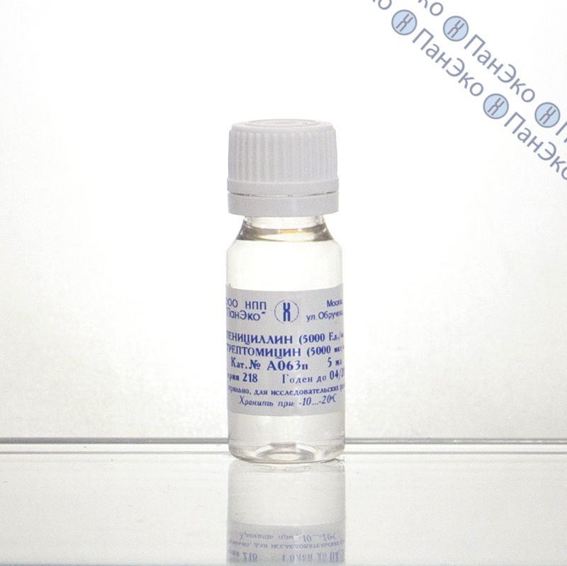 Пенициллин-стрептомицин, 100-х в растворе, 10×5 мл, ПЭТ-тара
