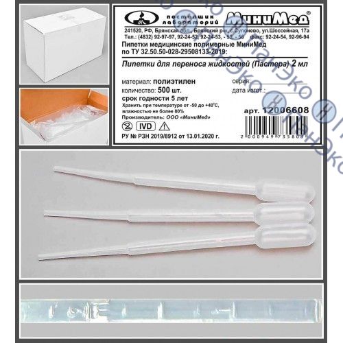 Пипетка Пастера 2 мл, градуир., нестерильная, Greetmed