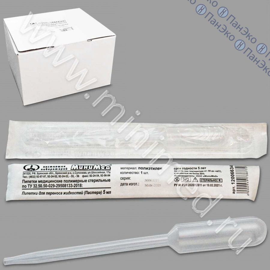 Пипетки Пастера, 5 мл, стерильные, без градуировки, Минимед