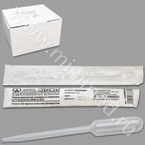 Пипетки Пастера, 5 мл, без градуировки, стерильные, ИУ, Минимед