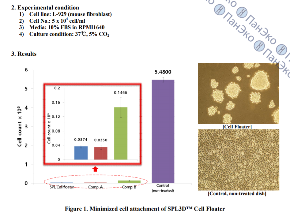 - Серия SPL3D™ Cell Floater оптимально приспособлена для 3D-культивирования и не требует привлечения дополнительных техник культивации, т. к. имеет поверхность со слабой связывающей способностью, на которой клетки сами образуют сфероиды вместо монослоя;