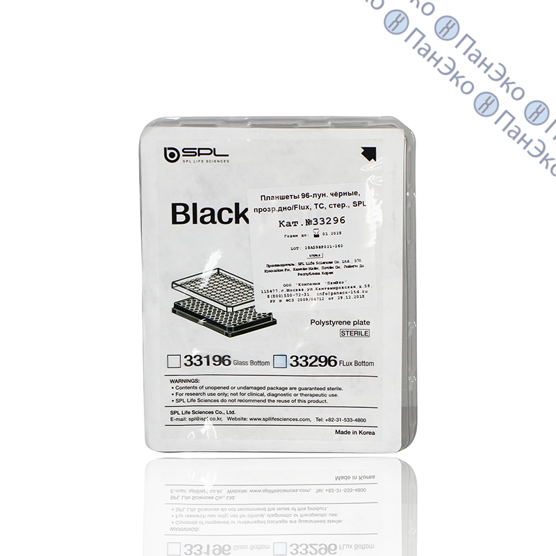 Планшет культуральный, 96-луночный, чёрный, прозрачное дно FLux, стерильный, SPL (В НАЛИЧИИ)