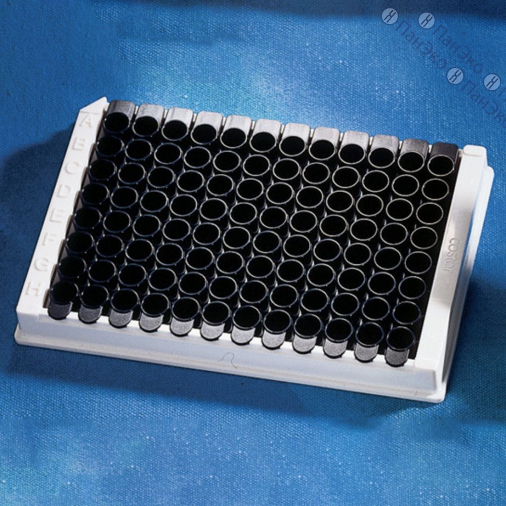 Стрипованный планшет для иммунологических исследований. Черные стенки не обладают автофлуоресценцией, а также не пропускают свечение из соседних лунок, повышая чувствительность метода.