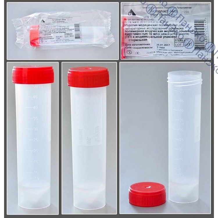 Пробирка 50 мл центрифужные, стерильная, Литопласт (В НАЛИЧИИ)