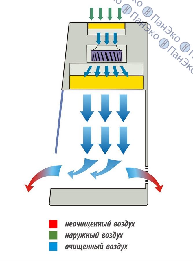 - Очистка воздуха, поступающего в рабочую камеру, происходит через приточный НЕРА-фильтр.