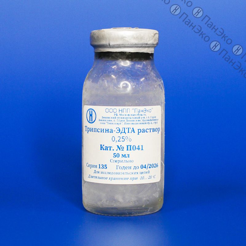 Представляет собой раствор трипсина (0,25%), ЭДТА (0,53 мМоль) и неорганических солей в очищенной воде, простерилизованный методом мембранной фильтрации. Не содержит соли кальция и магния.