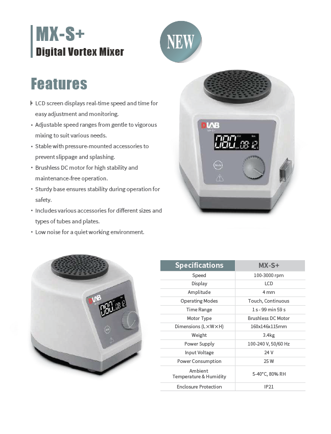 Регулируемый вортекс MX-S+, амплитуда 4 мм, 0-3000 об/мин, Dlab