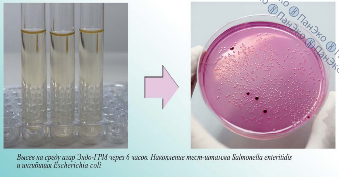 Питательная среда предназначена для селективного накопления сальмонелл из пищевых продуктов, объектов окружающей среды и других материалов с последующим высевом на дифференциально-диагностические среды.
