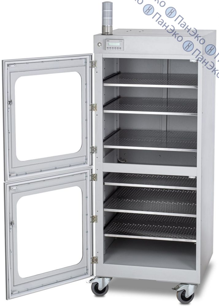 Шкаф сухого хранения обеспечивает сохранность компонентов и электрических характеристик диэлектриков в условиях осушения внутренней среды шкафа в соответствии с требованиями по хранению радиотехнических изделий, регламентированных российскими и зарубежными стандартами.