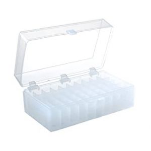 Имеет нумерацию мест и прозрачную крышку для удобства поиска образцов.