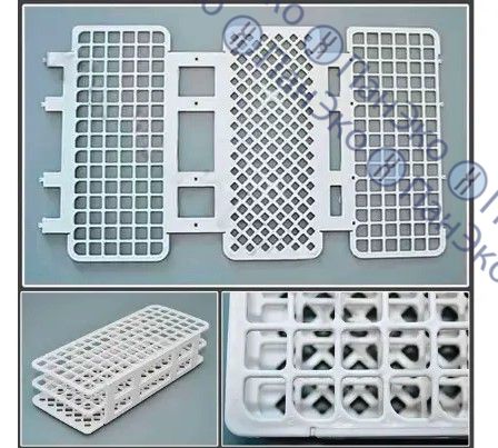 Алфавитно-цифровая маркировка позволяет точно идентифицировать местоположение пробирки с образцом в штативе. В транспортном или складском варианте имеет форму пластины, толщиной 3-4 мм.