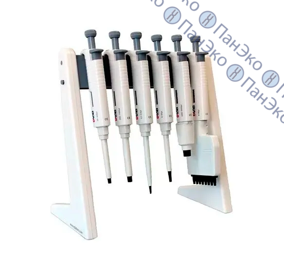 Предназначен для хранения одно- и многоканальных пипеток. Представляет собой две пластмассовые опоры и алюминиевую перекладину посередине со специальным покрытием.
