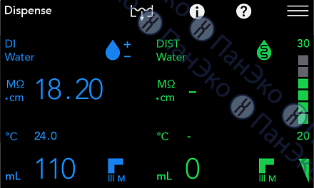 - Тип очищенной воды/класс чистоты: деионизированная дистиллированная вода.