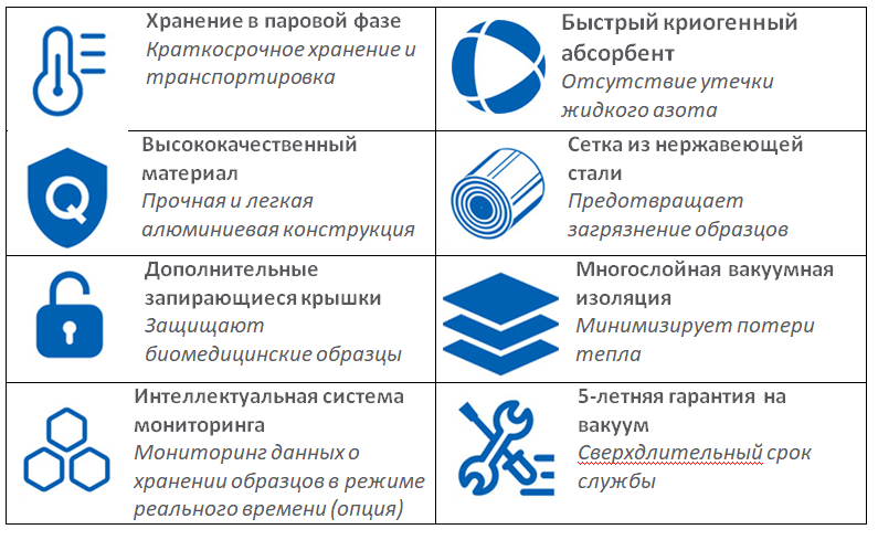 Серия dryshipper подходит для транспортировки образцов в криогенных условиях (хранение в парах азота, температура до -190°C), позволяет избежать риска разлива жидкого азота во время транспортировки, используется при кратковременных воздушных перевозках.