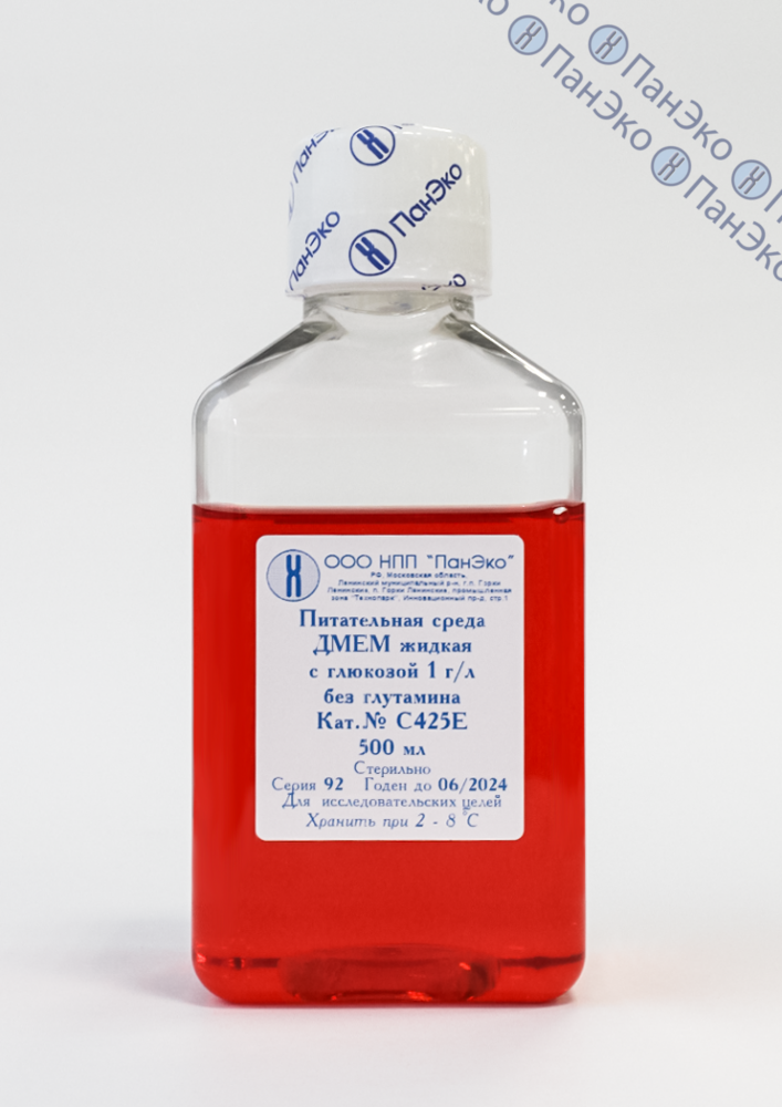 Среда DMEM, без глутамина, содержание глюкозы 1 г/л, 500 мл, Еврофлакон