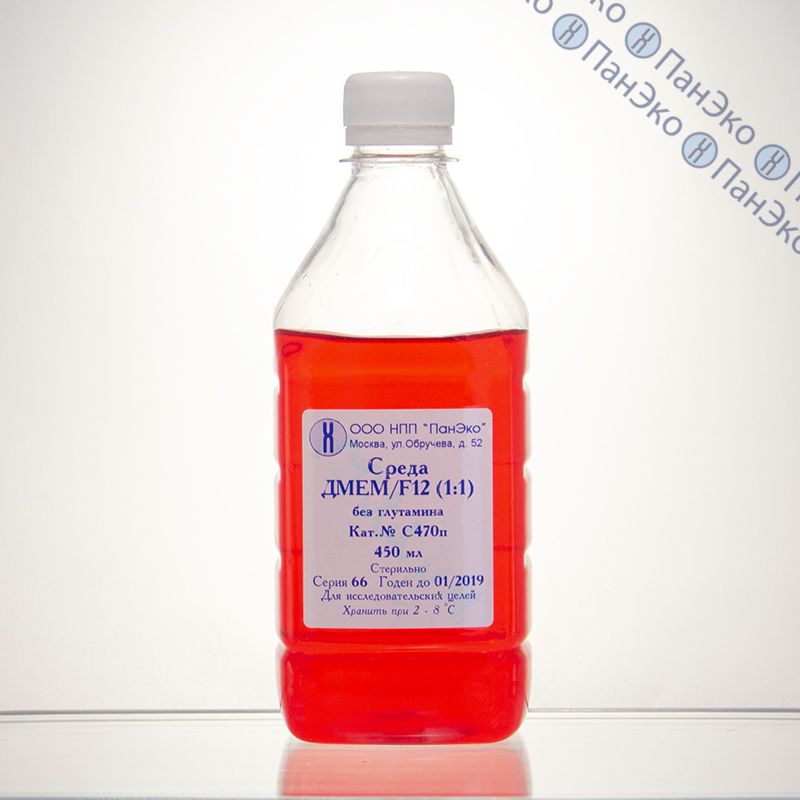 Представляет собой растворённую в очищенной воде смесь неорганических солей, аминокислот, витаминов, глюкозы и фенолового красного, простерилизованную методом мембранной фильтрации. Cреда DMEM/F-12 - это смесь питательных сред DMEM и F-12 в соотношении 1:1, но готовится из отдельных компанентов.