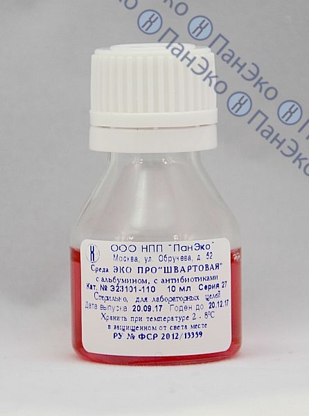 Среда ЭКО ПРО «Швартовая» приготовлена на основе бикарбонатного буфера. В состав среды входит вода очищенная, соли F-12, углеводы, аминокислоты, витамины, гиалуроновая кислота, человеческий сывороточный альбумин. Альбумин протестирован на наличие поверхностного антигена гепатита В, на антитела к вирусам гепатита С, ВИЧ-1 ВИЧ-2, на антитела к возбудителю сифилиса.