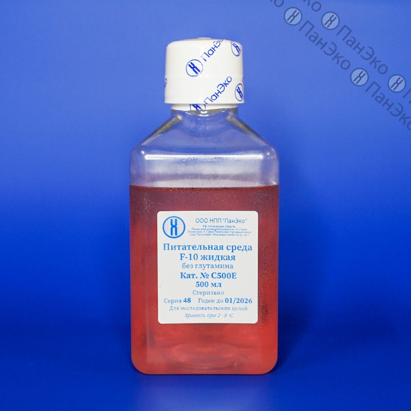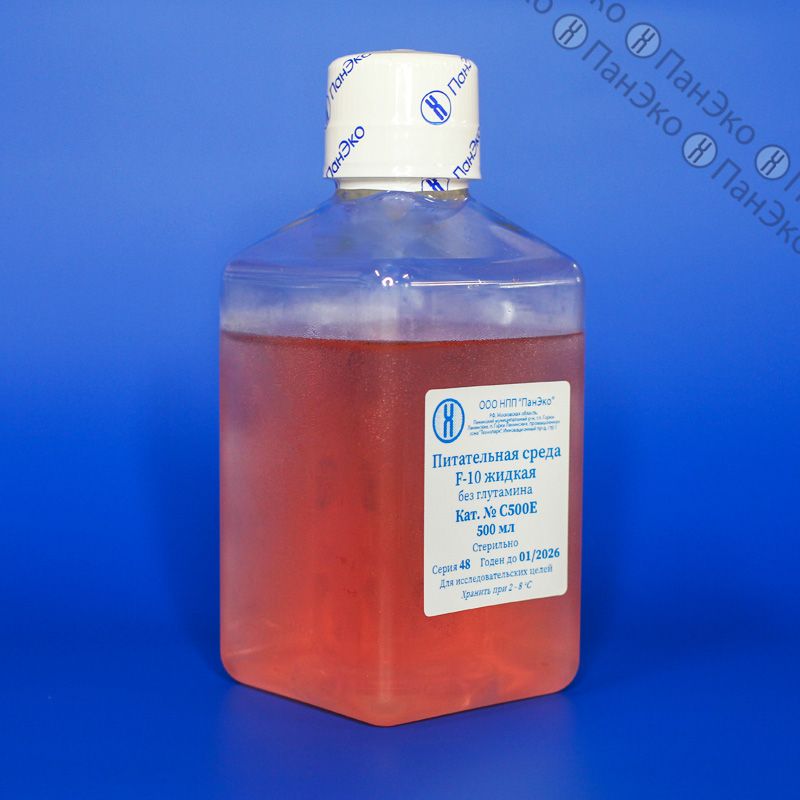 Данный продукт рекомендован для исследовательских целей. Питательная среда F-10 жидкая представляет собой растворённую в очищенной воде смесь неорганических солей, аминокислот, витаминов, глюкозы и фенолового красного, простерилизованную методом мембранной фильтрации. Антибиотиков не содержит.